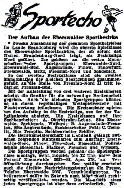 K R E I S K L A S S E B Mehr Angaben als aus dem folgenden Bericht können nicht von mir erbracht werden. Demnach gab es im angegebenen Sportbezirk Brandenburg Nord 3 Kreisklassen: